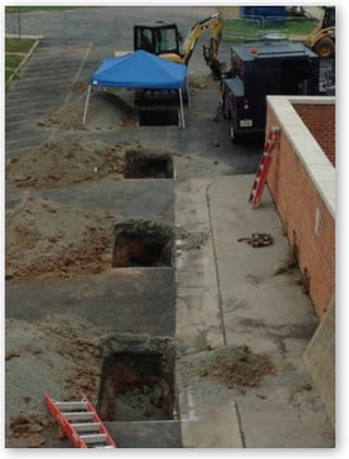 This led to a major excavation project, since a domestic water line had bad joints all along an entire length of the pipe.
