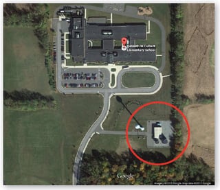 The water tower and associated water treatment facility (highlighted in the image) was built by LCPS as part of the requirements to be issued a construction permit for Harmony Middle School (co-located on the site, but not pictured). Although it was always the intent of the project to turn the water tower over to the town of Hamilton (which occurred in 2007), the transfer of the electric utility account did not take place. As a result, for many months LCPS was not only paying for the water, but also for the electricity costs of supplying it. Once again, a meter audit revealed the error.